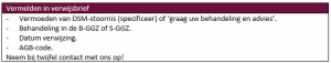 Om de verwijsbrief goed te kunnen verwerken, moet er gespecificeerd zijn of Jeugdhulp of GGZ van toepassing is. Bij GGZ is er een splitsing in Diagnostiek en Behandeling. Wanneer er twijfel is, staan wij bij Addenda altijd paraat voor overleg!