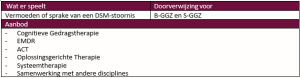 Wanneer er sprake is van een (vermoeden van een) DSM-stoornis, kan er worden doorverwezen voor een kort psychologisch traject. Bij Addenda werken meerdere regiebehandelaren die vaardig zijn in het behandelen van volwassenen met o.a. Cognitieve Gedragstherapie, EMDR, en Oplossingsgerichte Therapie. Ook wordt er actief samengewerkt met andere disciplines.